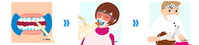 基本的に在宅治療で、薬剤を塗布したマウスピースを装着するだけで、優しく持続的に歯を白くしていきます。